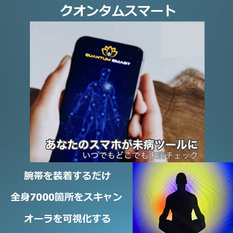クォンタムスマート体内の周波数をスキャンすることで健康状態を測定するアプリです。各臓器の状態や潜在的な感情などが分かります。ご自身のオーラの色も分かります。不調だった部位の周波数は調整できます。